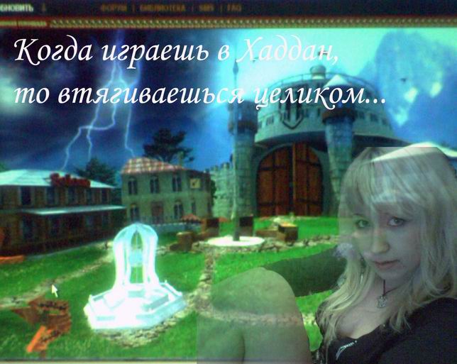 2.Надежда, 23 года. 3.Попала в Хаддан по приглашению очень хорошего приятеля из другой игры....Очеень понравилось.........Осталась... 4. Собственно я...... Вложение 3718 Вложение 3719 Вложение 3720 Вложение 3721 Вложение 3722 |