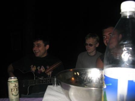 А потом к нам пришёл ещё один человек. Увы, о нём мне известно только то, что он, по его словам, не пьёт и не играет на гитаре (посидел у нас минут двадцать, сыграл песен пять, выпил рюмок три и ушёл).