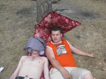 Вложение 10683 Тут мы обнаружили, что с нами был Верховный Инквизитор. И Глава Ордена Хаоса провёл с ним дипломатический разговор на матраце... Вложение 10684 Что закончилось несколькими физическими упражнениями... Вложение 10685 А SER GANT отправился чинить шест, который был поломан в результате неких других физических упражнений, секрет которых канул в лету вместе с последней бутылкой... Вложение 10686 Но Верховный не бросил своего товарища в беде. Правда, к публичности он, кажется, не привык... Вложение 10687 |