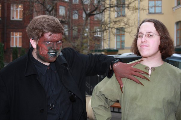 *В хаддане я появился давно уже и не помню когда... все благодаря Отблеску Вечности который сначала позвал меня сюда а потом все время заставлял продолжать игру когда у меня что-то не получалось. В итоге я все же забросил хадд и где-то полгода не играл(это был не единственный из моих перерывов) но потом я начал играть заново нашел кучу друзей и с горем попалам качаюсь потихоньку) *Я родился 21.10.1989 в Санкт-Петербурге зовут меня Алексей. Я человек творческий и неусидчивый поэтому нередко случается что я забрасываю начатое дело не закончив его) вот небольшой список чего я забросил пока был в школе(слава богу школу не забросил): Хор, детская железная дорога, секция футбола, плавание, карате и это еще не весь список) но на данный момент я вроде как нашел себя) я заканчиваю медицинский колледж №1, я волонтер красного креста, в прошлом году занял 2 место в конкурсе по оказанию первой помощи..к тому же я капитан команды КВН(местной), а этой весной я ездил на стажировку в Финляндию и понял что Россия намного....ЛУЧШЕ) на этом мой краткий рассказ окончен)) * фотки: 1)ничего особенного у друга на концерте 2) Лешу выпустили на каток(в юбилейный)))) 3) Красный крест - изображал пострадавшего) 4) Финляндия... показывал испанцам и британкам как надо отдыхать) 5) Фея жадина и этим все сказано)) все нервы мне вымотала) |