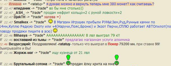 12.01.2009 персонаж -ratatuy- не выполнил условия договоренности по продаже елки крита. Я передала ему деньги - оговоренные 380 мн., елку он не передал. Вначале отговаривался проблемами с интернетом, потом замолчал. Скриншот прилагается. Прошу разобраться и помочь вернуть деньги. Заранее спасибо. |