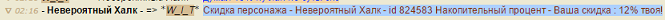 - Невероятный Халк -) подтверждение в чате имеется, но персонаж на каторге, надеюсь это не помешает воспользоваться скидкой.