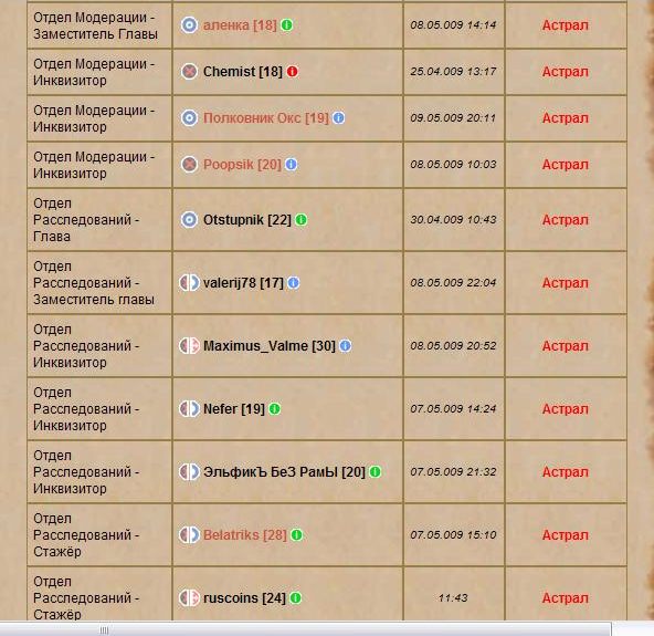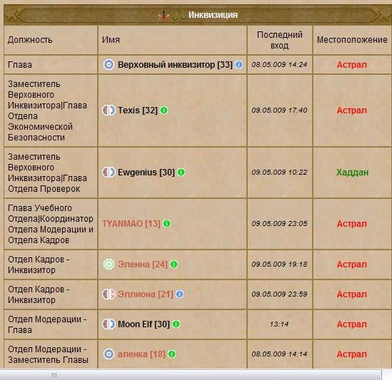 Ситуации, когда он-лайн нет ни одного инквизитора, возможны. Как уже было сказанно, не следует забывать, что инквизиторы, в первую очередь, люди, а не персонажи. Тем не менее, ответственные за модерацию чатов в указанное время получили выговоры. Мы постараемся, чтобы подобное повторялось как можно реже. Жалоба отклонена. Тема закрыта.