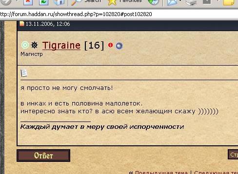 констатирую совокупность оскорбления ( я во всяком случае чувствую себя оскорбленным ) , и провокацию на конфликт. Просьба модераторов принять меры.