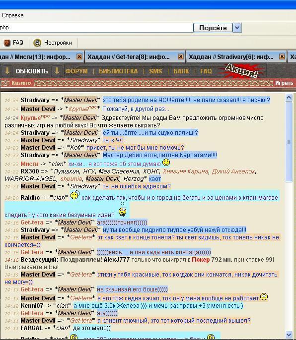 Жалобы на игроков В этом разделе оставляйте заявки на разбор ваших дел в Суде Инквизиции. Вас преследуют в чате? Вас обманули при сделке? Тогда Вам сюда. |