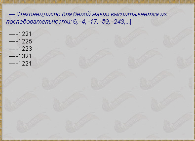 Ну и задачка... Мне даже в голову такая последовательность не пришла... Хотя и решал ВСЕ остальные математические квесты за 5 минут... Ещё раз спасибо! Ответ получен... Уважаемые модераторы, закройте тему пожалуйста...