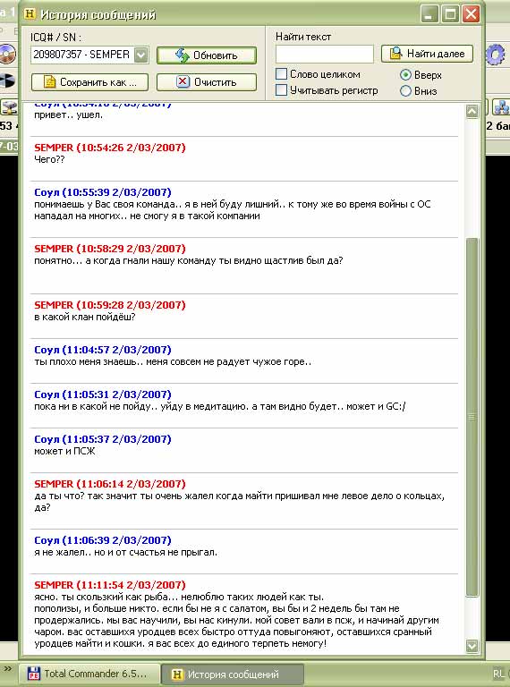 бы война я нападал в Банке на Катенку.. в баре не нападал и не заходил.. за всю историю войны ни разу КИ не воспользовался и все их вчера вернул Сэму в целости и сохранности.. Катенке я проиграл тот бой но КИ не вызвал. уровни у нас были одинаковые. В ответ на ее оскорбления даже не дал молчу..напал.. проиграл.. ну чтож.. значит заслужил. |