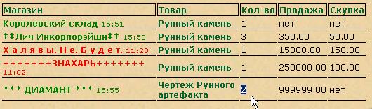 )) вот таксобрано уже под 50 камней и минимум 4 чертежа update: 5 чертежей минимум, добавился ZimaLeTTo 16:35 Чертеж Рунного артефакта 1 1000.00 50.00 update2:6, У патриота Игарька 16:38 Чертеж Рунного артефакта 1 нет нет Последний раз редактировалось rbd, 18.01.2007 в 17:43. |