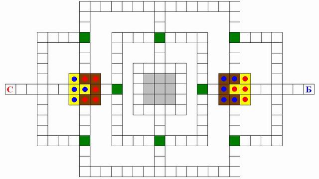 Легенда: Во времена давно минувших дней, таких что уже и старички не вспомнят, шахтерами была разведана жила драгоценных металлов. Жила была настолько богата и протяженна, что было принято решение прорубить два входа, в последствии соединенных подземной цепью туннелей. Западный вход располагался в самом Старограде, а Восточный на северо-востоке окрестностей, примерно в том месте, где ныне расположен лагерь разбойников. Добыча серебра, золота и прочих металлов велась активно. Появились залы для отдыха шахтеров, плавильни, склады, ремесленные мастерские – щедрый рудник постепенно обживался. Пока в один прекрасный момент не пришли они. Племена драконоидов с юго-востока, кобольдов с севера, бездушных с запада затопили рудник, прежние хозяева спешно бежали под неудержимым натиском лавы захватчиков. http://forum.haddan.ru/attachment.ph...d=13162251 22 Обозначения на карте: С – западный вход для стражей(место снятия дроповости со слитков, а также место учёта); Б – северо-восточный вход для разбойников; (место снятия дроповости со слитков, а также место учёта); Коричневый квадрат – склад бронзовых слитков(с красной точкой для стражей, с синей точкой для разбойников); Серый квадрат – склад серебряных слитков; Золотой квадрат – склад золотых слитков(с красной точкой для стражей, с синей точкой для разбойников); Зеленый квадрат – комнаты для отдыха(фонтан здоровья, манны и бодрости в каждой клетке) Условия: 1) Переход между клеточками 1минута (сапоги скороходы, элики скорости и прочие бонусы не действуют); 2) Во время перехода происходит нападение ботов(драконоидов, кобальдов, бездушных в зависимости от уровня). Выпадает обычный трофейный дроп, как и в любом лабиринте. В команде ходить выгоднее, так как нападают на одного члена команды; 3) В случае проигрыша ботам ополченец теряет слитки/выбитый дроп и становится побитым, автоматически возвращаясь на вход. Побитость снимается на входе. 4) Убийство игрока противоположной фракции приносит выбитый им дроп(кроме слитков, слитки в тусклых коридорах теряются и исчезают). Таким образом убийство поощряется очками пути, лутом и потерянными очками противоположной фракции. 5) Учёт слитков ведется на входе у npc, он же снимает дроповость. 1 золотой слиток = 8 очков в копилку категории/фракции; 1 серебряный слиток = 3 очка в копилку категории/ фракции; 1 бронзовый слиток = 1 очко в копилку категории/фракции; 6) За один круг игрок может принести не более одной штуки каждого вида слитков. 7) Слитки обмениваются на поверхности(там же где и заклепки) по курсу 5 золотых = 8 очков репутации, 5 серебряных = 3 очка репутации, 5 бронзовых = 1очко репутации. Или продаются на базаре. 8) Подведение итогов(зачет категории и общий зачет фракций) в конце недели.