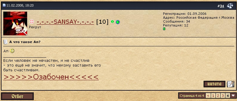 Первый. Вложение 8036 Второй. Вложение 8037 P.S. На первом видно что я вошел под своим ником. На втором заметно отсутствие кнопки "править" |